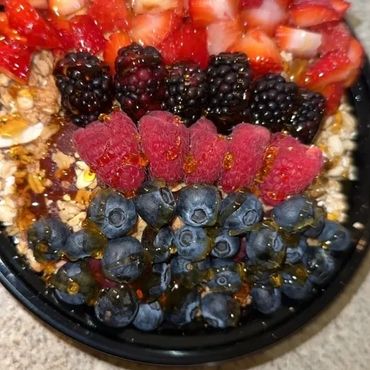 Strawberry, Blueberry, Blackberry, Baby Banana, Pineapple or Seeded Grapes (availability varies by season)